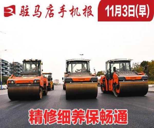 近日,市公路部门对国道328线驻马店城区段路面进行预防养护。施工现场,大型摊铺机匀速前进,钢轮压路机与胶轮压路机紧密配合、交替碾压,确保新铺路面平整密实。(记者 张勇)