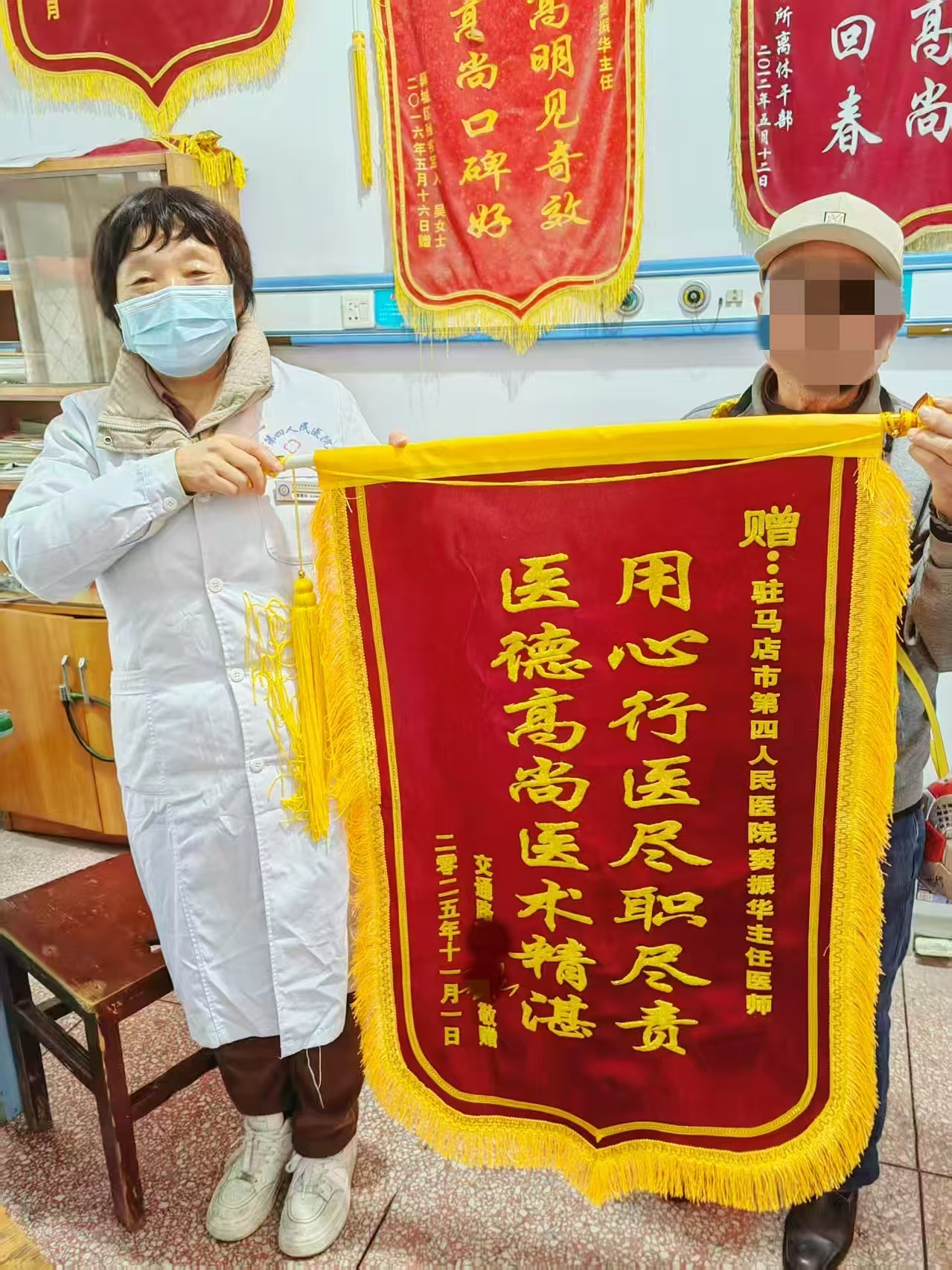 近日,驻马店市第四人民医院内科门诊主任窦振华收到一面印有“用心行医尽职尽责,医德高尚医术精湛”字样的锦旗。
