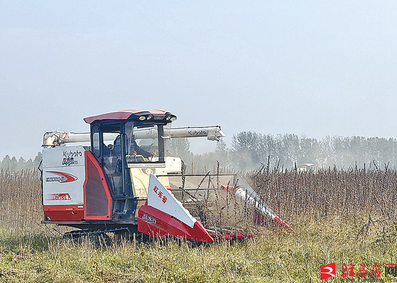 芝麻收割机在田间穿梭。