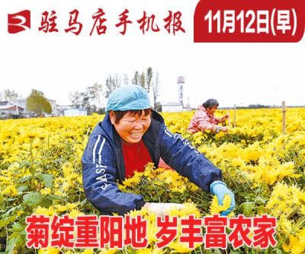 11日,在上蔡县重阳菊农业的种植基地里,农户正娴熟地采摘成熟的花朵,田间地头一派繁忙的丰收景象。今年,该种植基地共种植菊花200多亩,预计亩产量2000斤左右。小小的菊花已成为当地带动农民增收的“金色产业”。(记者 弓华静 耿杨扬)