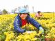 11月11日,在上蔡县重阳菊农业的种植基地里,农户正娴熟地采摘成熟的花朵,田间地头一派繁忙的丰收景象。今年,该种植基地共种植菊花200多亩,预计亩产量2000斤。小小的菊花已成为当地带动农民增收的“金色产业”。记者 弓华静 耿杨扬 摄影报道
