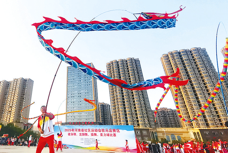 驻马店网讯(记者 张朝)11月9日,市区世纪广场内,鼓乐齐鸣震长空,彩龙翻飞映笑脸。2025年河南省社区运动会驻马店赛区健身鞭、龙狮舞、操舞、柔力球等比赛在此举行,昔日宁静的广场化作沸腾的欢乐海洋。广大市民从城市四面八方汇聚而来,踮脚翘首、拍照喝彩,共同赴一场充满活力与温情的文体“盛宴”。
