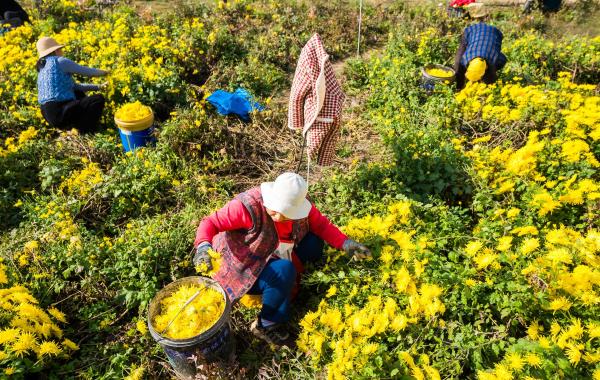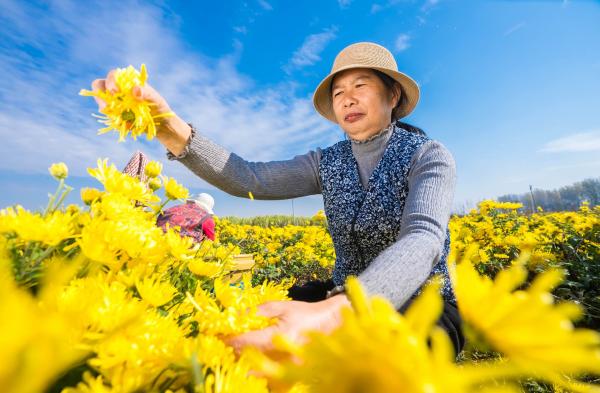 11月11日,位于西平县老王坡的高标准农田的水军家庭农场,如毯的金菊迎风盛放,摇曳生姿。农户们忙碌的身影穿梭于这片金色海洋,与灿烂的花丛共同绘就了一幅动人的丰收画卷。记者 王晓晶 见习记者 赵永涛 摄影报道