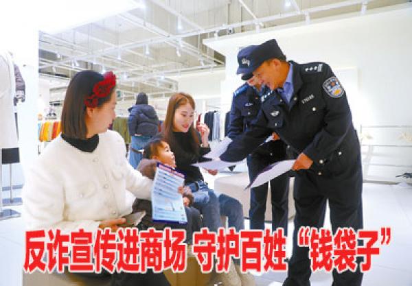 12日,驿城公安分局新华派出所风光社区民警到辖内商业广场开展反诈宣传,全力守护老百姓的“钱袋子”。(记者 代廷伟 通讯员 黑晓)