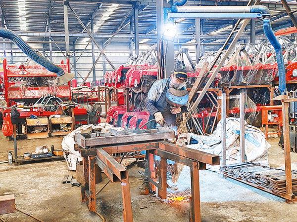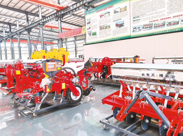 近日,在河南农有王农业装备科技股份有限公司车间,工人正在加紧生产订单产品。 据了解,该公司先后与农业农村部南京农业机械化研究所、河南农业大学等科研院所达成战略合作,构建了覆盖耕整、种植、收获、收获后处理四大类60多个品种的产品矩阵,成为区域农机市场的核心力量,生产的“2BMYFQ-6B型免耕气吸式精量播种机”入选2025年河南省首台(套)重大技术装备认定名单。