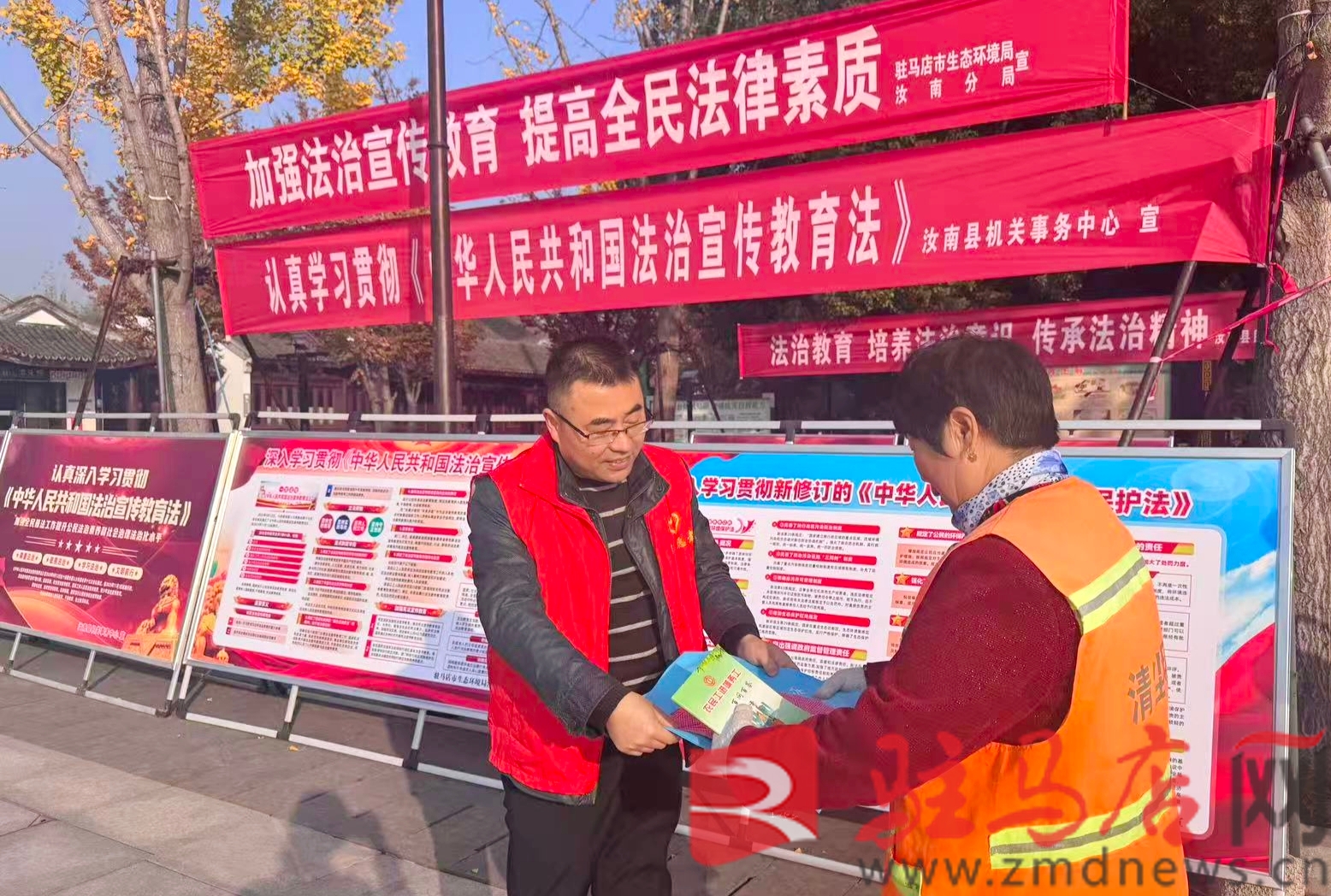 驻马店网讯(通讯员 尹波 马明真)近日,市生态环境局汝南分局在天中山文化园广场组织开展《中华人民共和国法治宣传教育法》集中宣传活动,让法治精神浸润人心。