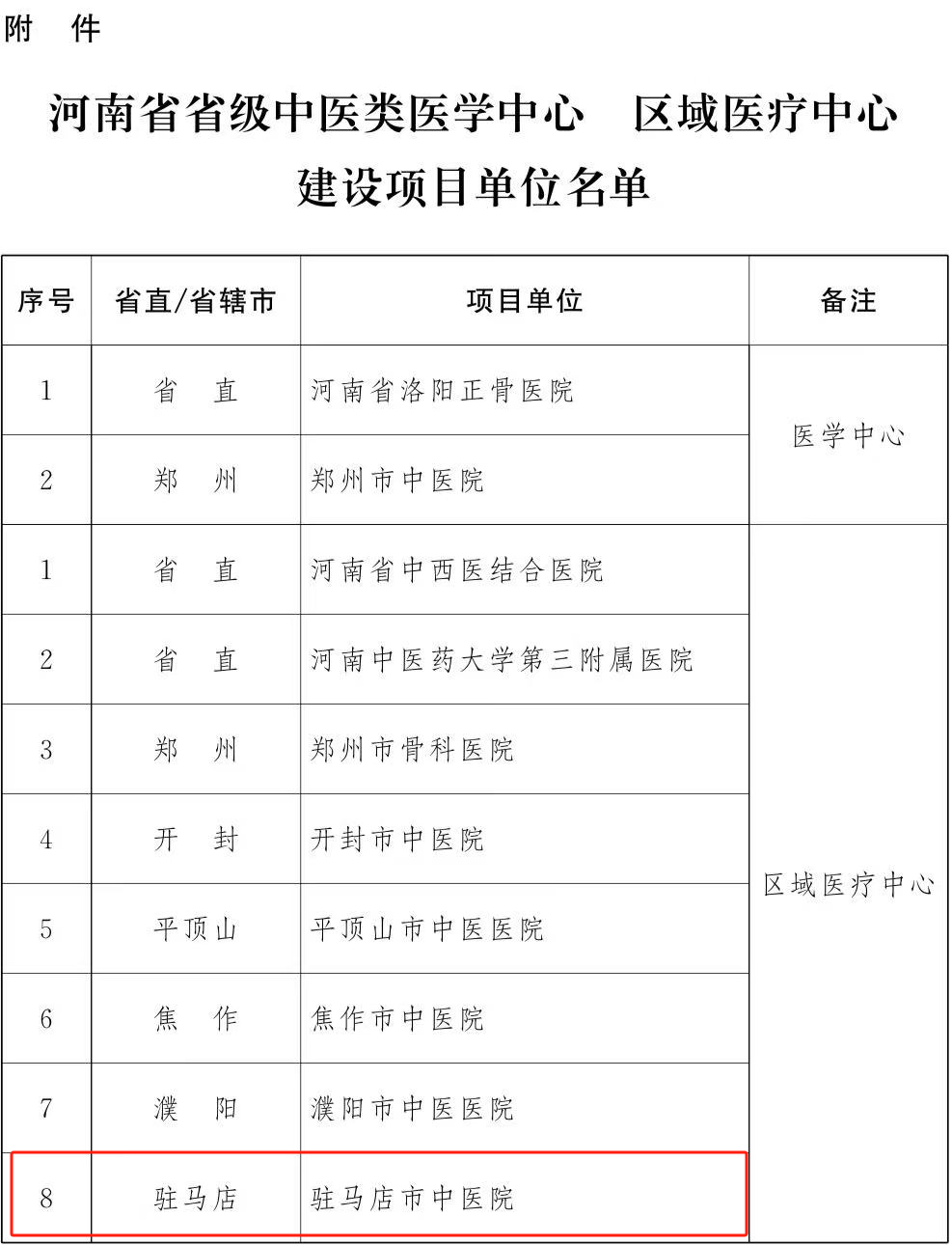 11月18日,河南省卫生健康委员会、河南省财政厅联合下发《关于公布河南省省级中医类医学中心区域医疗中心建设项目单位名单的通知》,驻马店市中医院成功入选河南省省级中医类区域医疗中心建设项目单位。