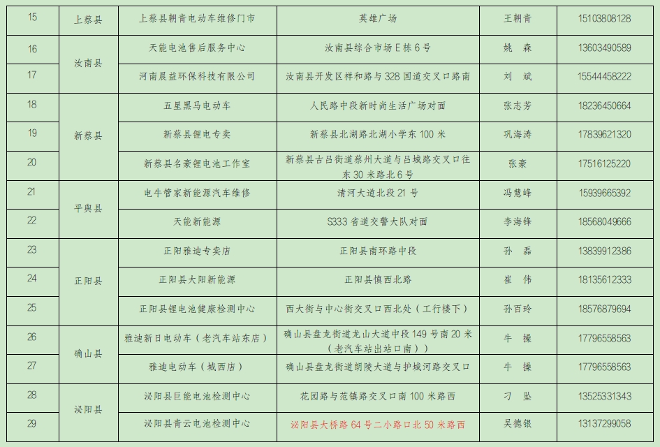 附件:驻马店市电动自行车锂离子电池健康评估网点