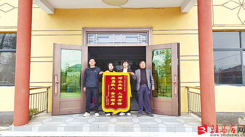 被救者家属来到泌阳县二高向崔颢冉(左三)赠送锦旗