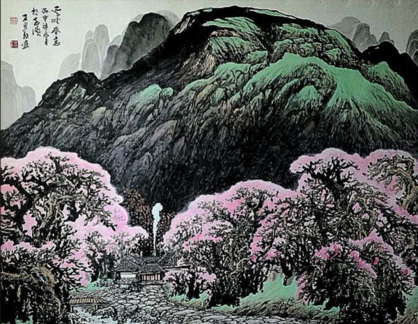 王恩松潇洒超然的性格,让他的作品也总是洋溢着一种清新和悠然,令人神往。不会让读者有似曾相识之感,而是给人耳目一新之振奋。大块苍劲的集墨是画家激情的宣泄,也是意趣的独现,山川树石顿时有了气势和神韵,给人先入为主的深刻印象和震撼力。但他能放也能收,而不是任激情无边挥洒,他乍然收回笔墨,似高山流水的琴音戛然而止,有些突兀,令人惊讶。继而他在山水间别有用心地开辟出了另一番意境。他讲究以细部的精妙构思来点化作品的人情味,往往一间茅屋、一方亭阁、一座小桥、一个人影,点出了主题,跳出了生机和意趣。读他的画,很轻松、很实在,回味无穷。