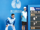 朱康(左)在第十五届全国运动会网球赛事上执裁