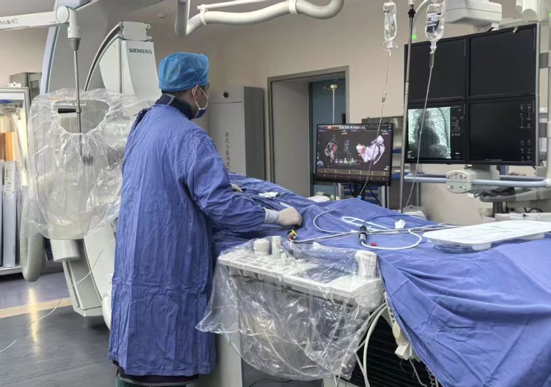 面对这一严峻挑战,该院心血管内科二病区主任赵文艺与医生徐增辉进行了深入探讨,最终制定了以“心腔内超声(ICE)”为核心的全新手术策略。该操作无需经食道,也无需注射造影剂,完美规避了患者的禁忌症。