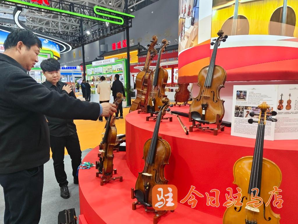 国际农产品贸易馆里,印尼香料、泰国榴莲饼、越南咖啡依次排开,金门高粱酒的玻璃瓶在灯光下泛着光泽,客商们翻看手册、交换名片;驻马店展区的一红色展台上,一排木质小提琴静静陈列,两位参观者轻拨琴弦,听木材的共鸣在展厅里散开。