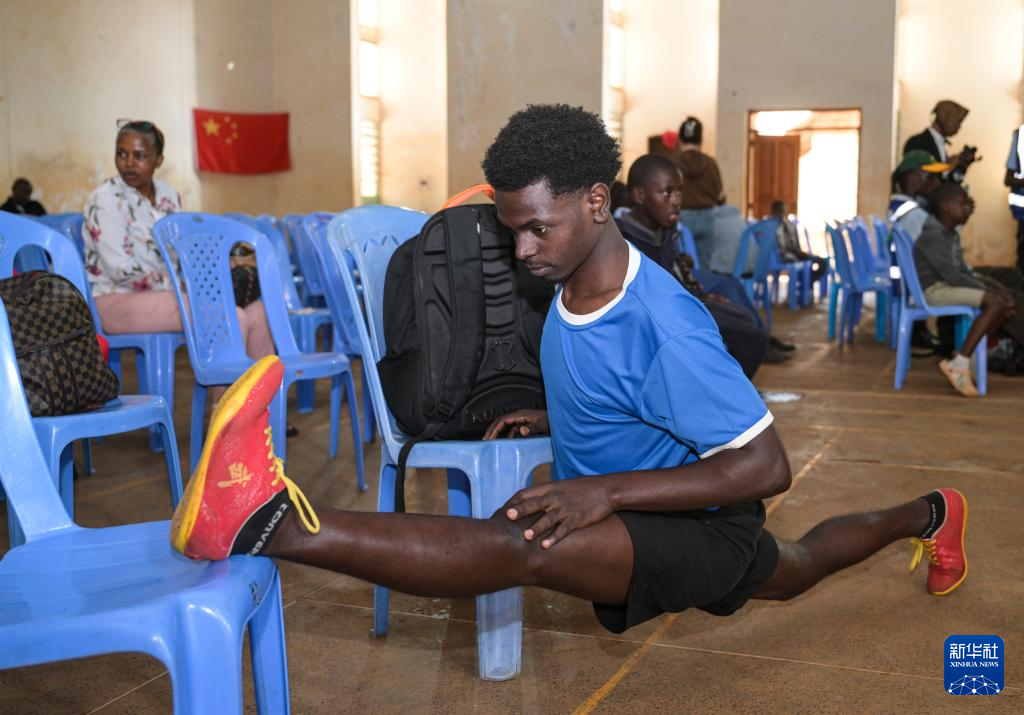 11月29日,在肯尼亚中部基安布郡,一名选手在比赛前压腿。