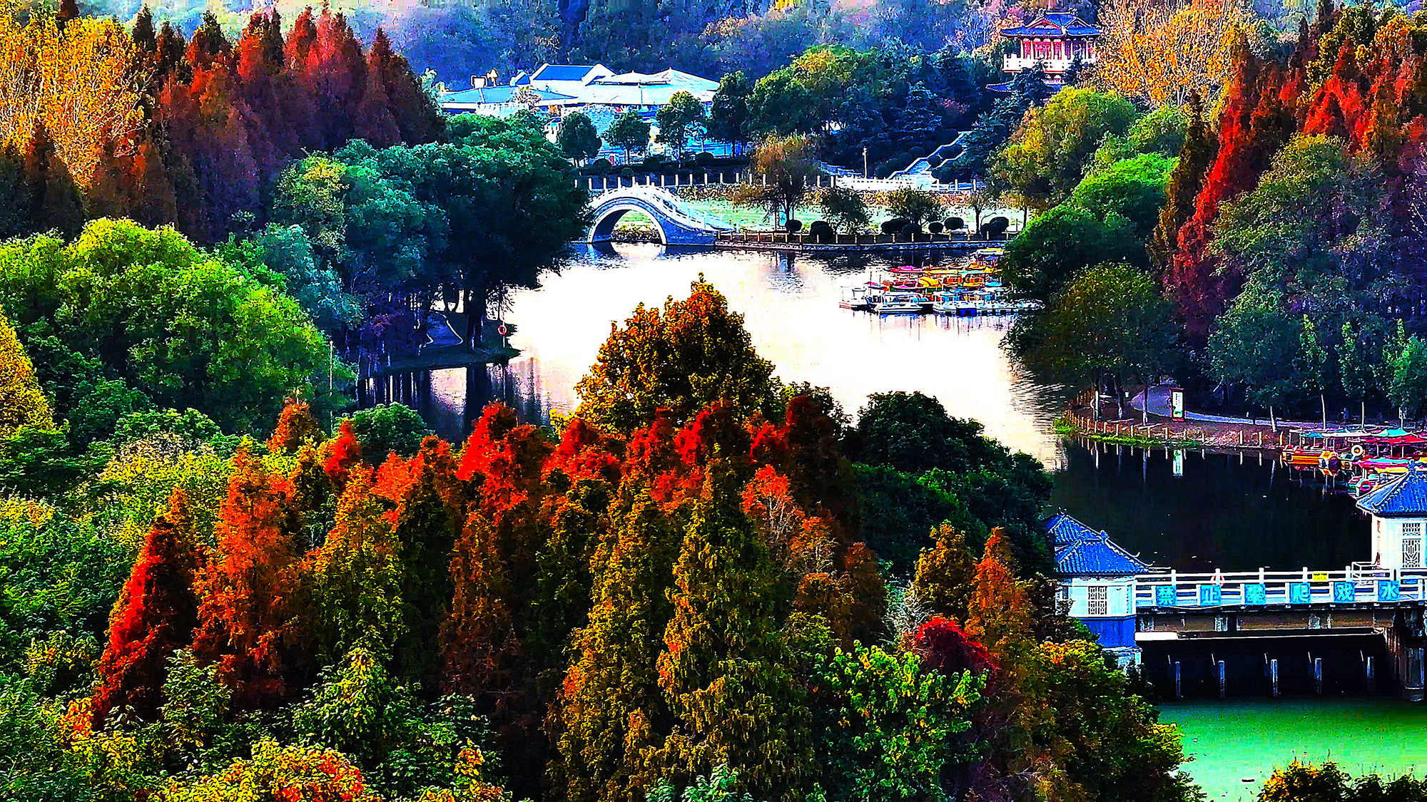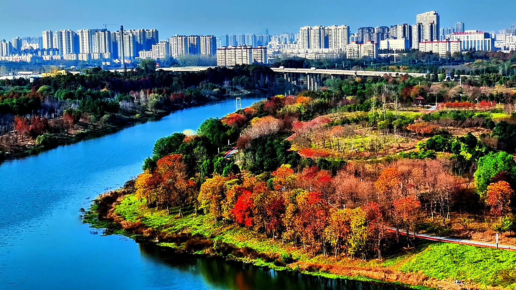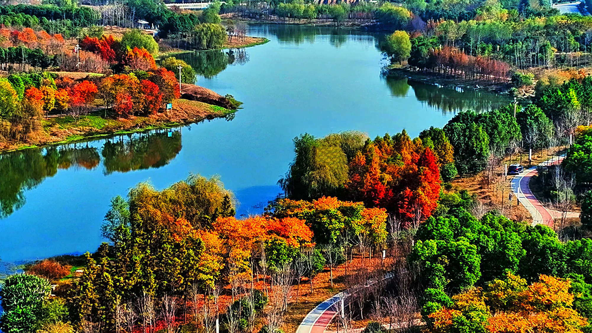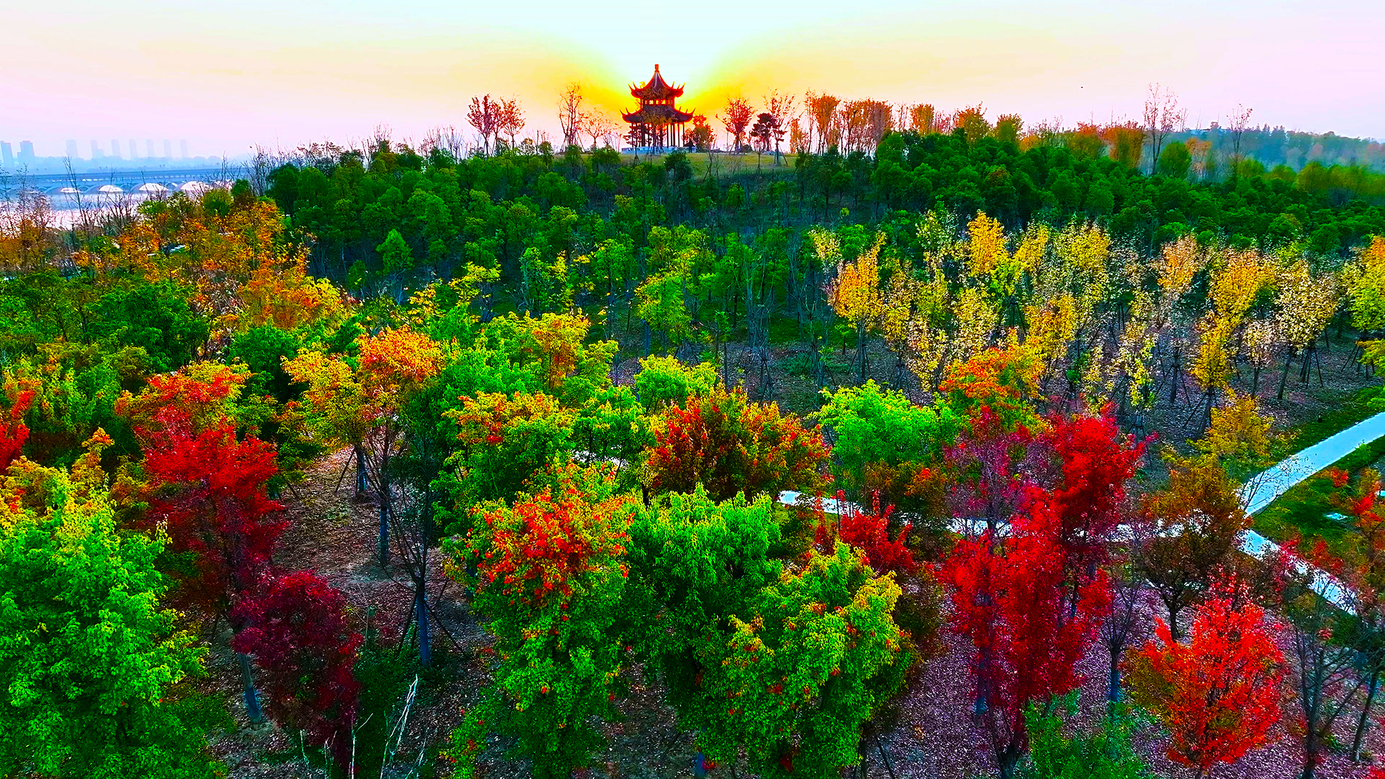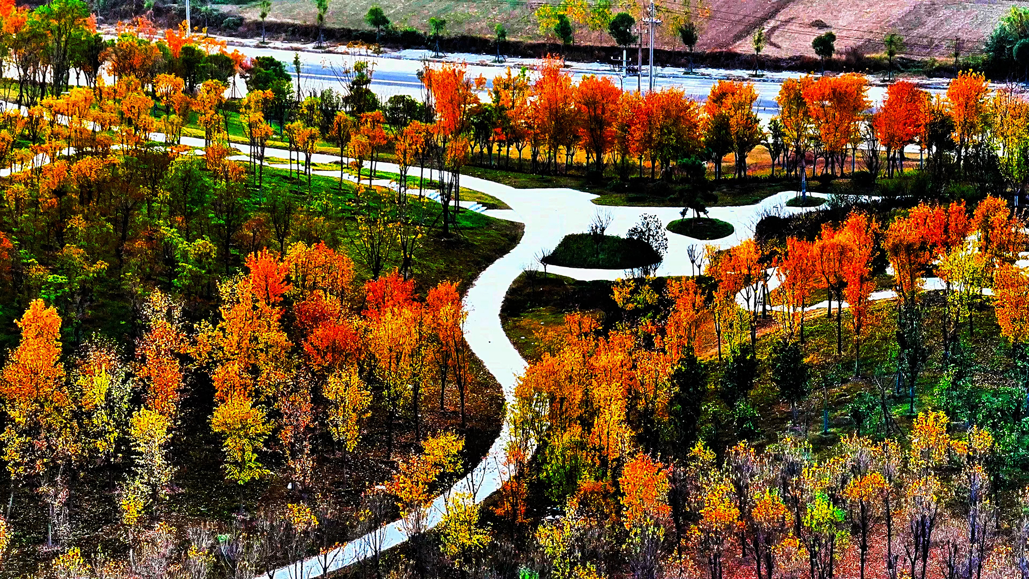 市区东郊滨河公园被浓郁色彩包裹,每一处景致都像精心绘制的画卷,让人陶醉。