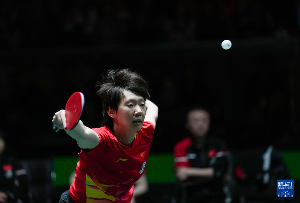 12月4日,中国队选手王曼昱在女单比赛中回球。她3比0战胜韩国队选手李恩惠。