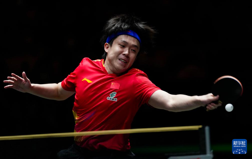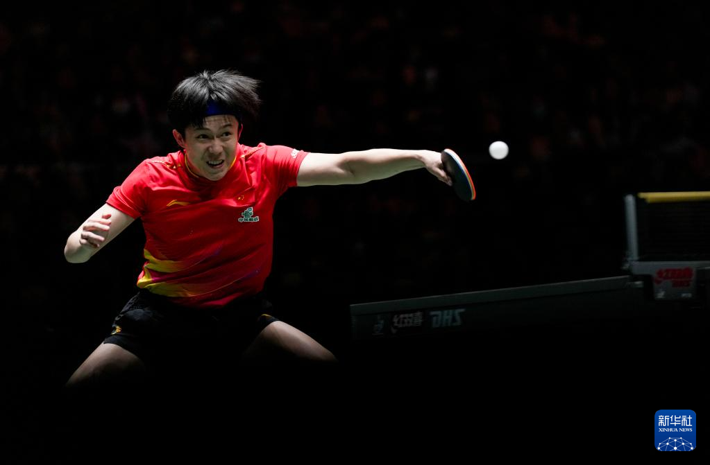 12月4日,中国队选手王楚钦在男单比赛中回球。他2比0战胜韩国队选手安宰贤。