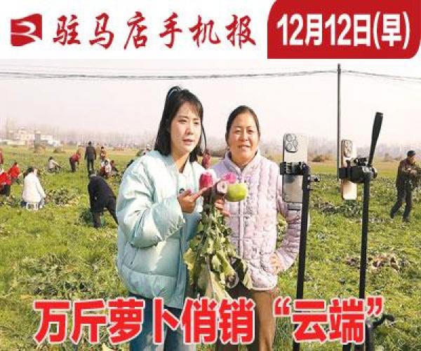 8日,在新蔡县练村镇大庄村田野里,翠绿与紫红交织的萝卜缨随风摇曳,农户正忙着采收水果萝卜。主播在采收现场,用最真实的场景向网民展示产品,通过网络推广销售万斤水果萝卜,现场展现出数字赋能乡村振兴的生动图景。(记者 熊国森 通讯员 闫琼)
