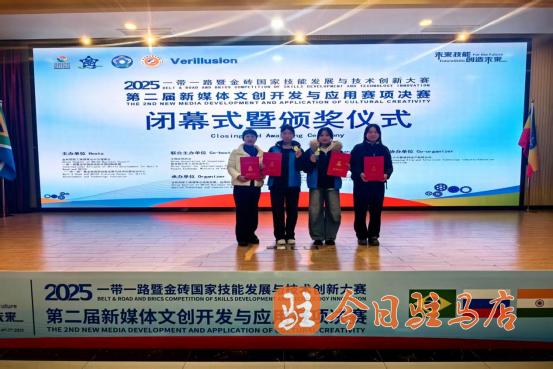 驻马店网讯(通讯员 王冬 李晓昕)近日,2025“一带一路”暨金砖国家技能发展与技术创新大赛第二届新媒体文创开发与应用赛项决赛在重庆财经职业学院举办。驻马店职业技术学院学生孟可、苏冰洁凭借扎实的专业能力和默契的团队协作荣获学生组一等奖,同时晋级北非国际赛。指导教师李晓昕、刘子瑄荣获“优秀指导教师奖”,学校荣获最佳组织奖。