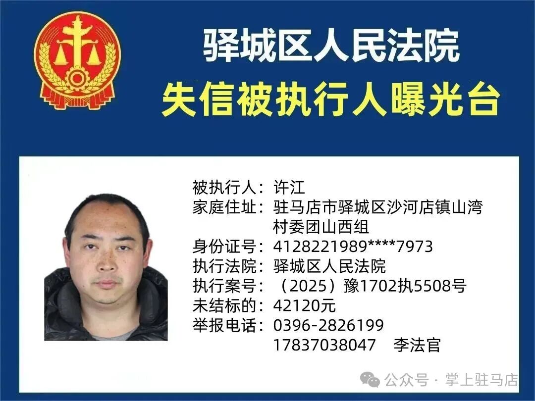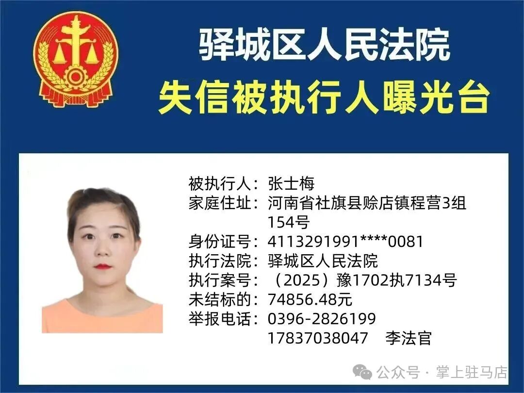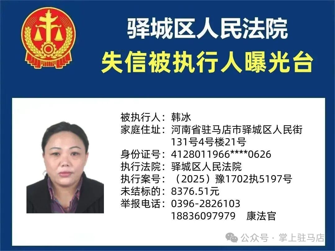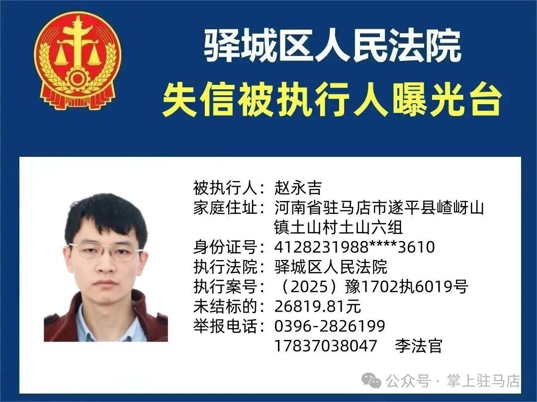 摘要:近日 驿城区人民法院 曝光一批失信被执行人 ↓↓↓ 您的每一次转发 都有可能增加申请执行人把 “纸上权利”兑现成“真金白银”的机会。您的每一次分享 都将推动社会诚信建设迈进一大步 全城联动 让失信被执行人无所遁形 提醒公众在与以上 失信被执行人交往时 请持谨慎态度 规避交易风险