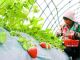 12月16日,农民在山东省滨州市博兴县湖滨镇柳童村大棚里采摘草莓。