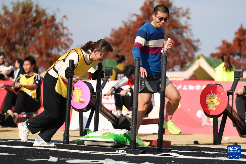 12月28日,参赛选手在“负重运粮”比赛中。