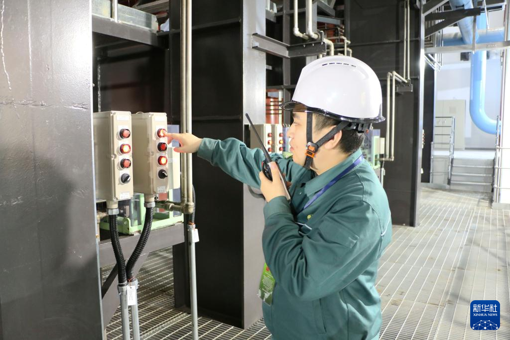 12月27日,在吉尔吉斯斯坦比什凯克,工作人员在比什凯克市垃圾焚烧发电项目锅炉车间巡检。