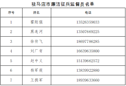 4.廉洁征兵监督员。省、市、县、乡设立廉洁征兵监督员,如有征兵廉洁问题可随时反馈,欢迎全社会共同监督。