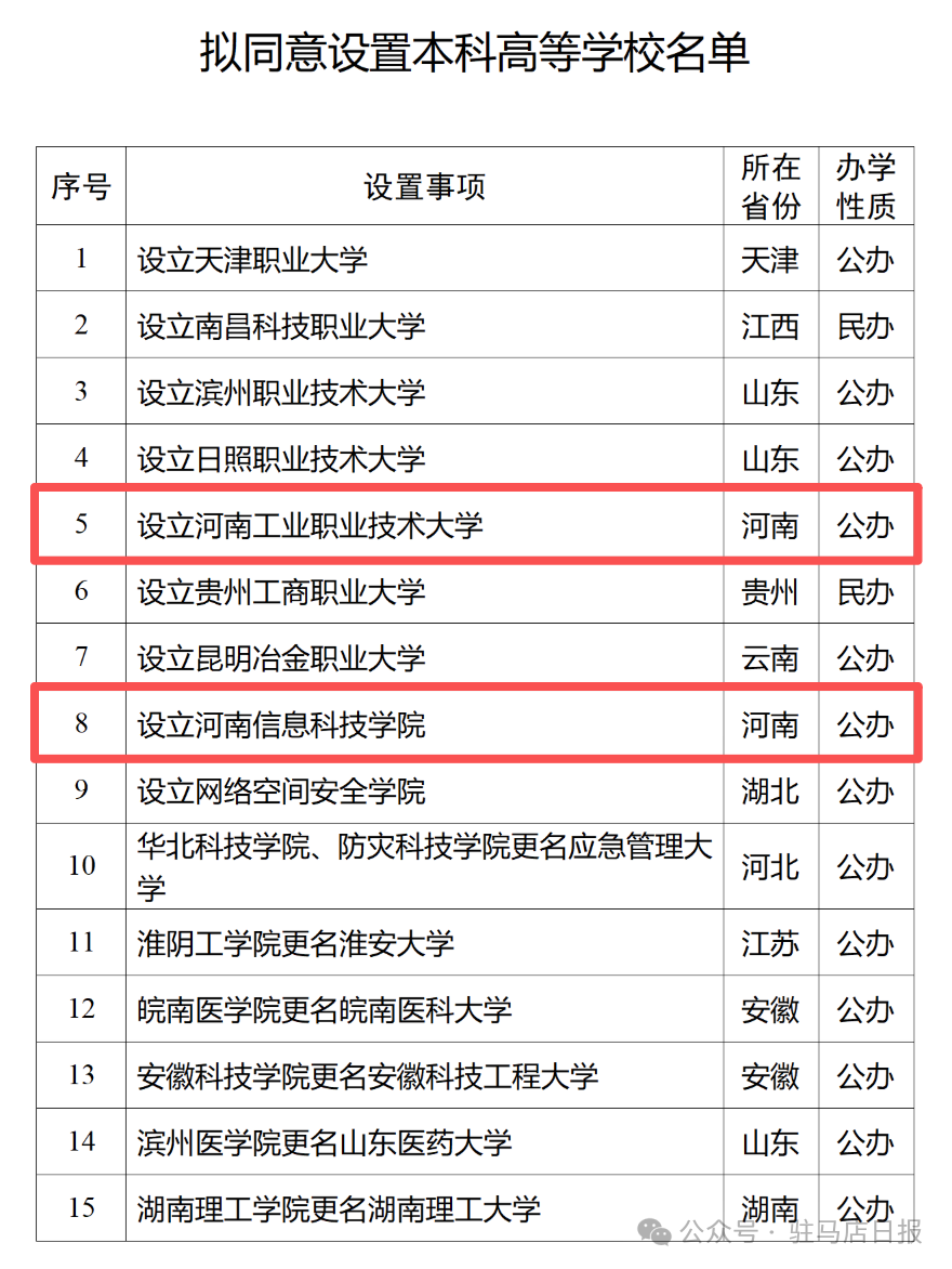 公示中!河南拟设置2所公办本科高校