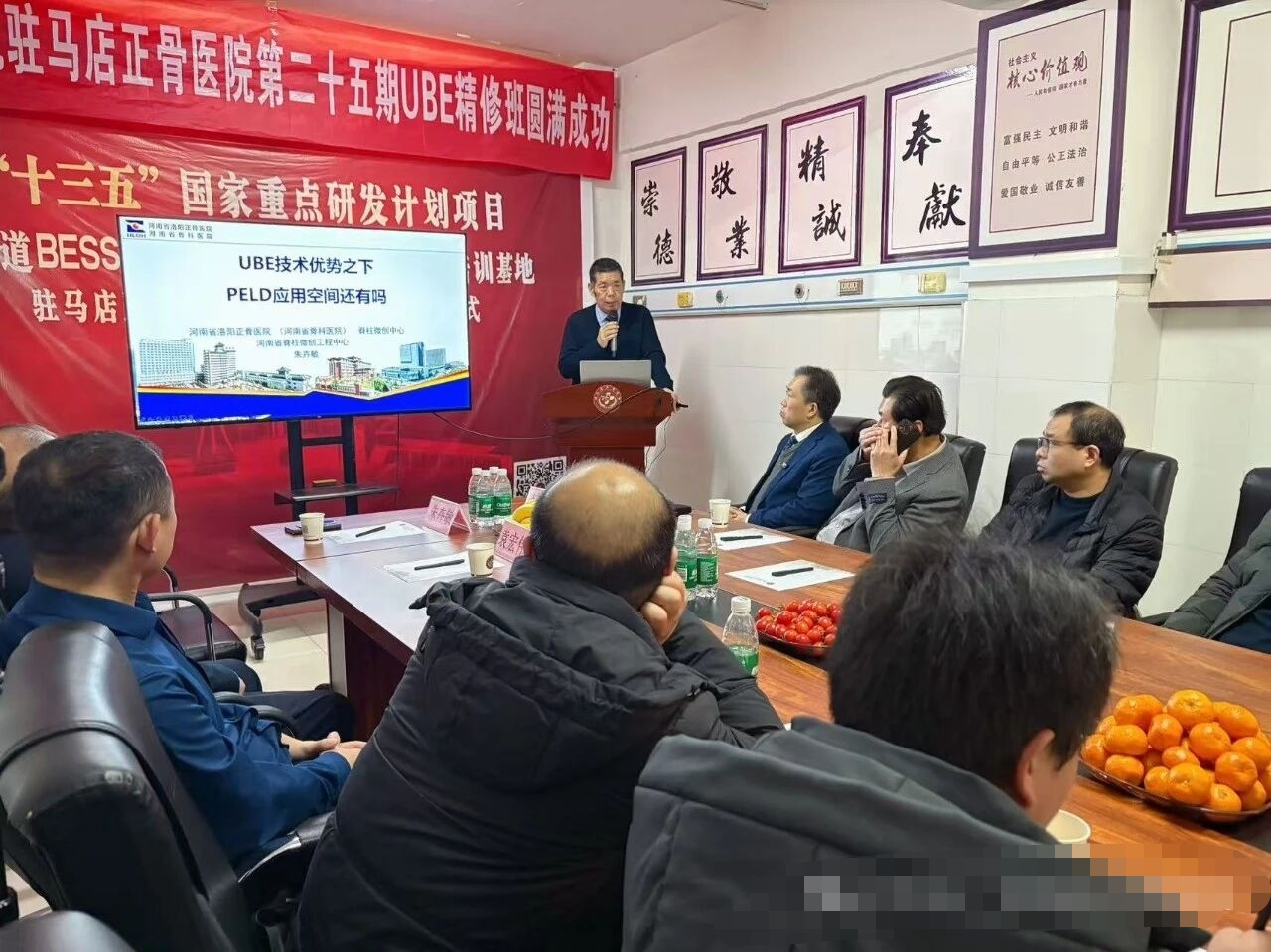 2025年,该院搭建了多层次学术交流平台,开展了系列公益培训、专业研讨活动等,并邀请省级专家莅临指导。如,“驻守天中·客聚梅州·镜启新程”第二十四期UBE学术会议由梅州市客都医院与驻马店正骨医院联合承办,梅州首期单侧双通道脊柱内镜技术(UBE)手术直播会议,吸引了24万+人次在线观看。直播手术由驻马店正骨医院医疗团队主刀,展现了驻马店正骨医院脊柱微创技术的新成果;该院院长吴鹏带领医疗团队亮相全国性COA学术盛会,以《单侧双通道内镜(UBE)技术下腰椎术后椎管内血肿的危险因素分析及防治策略》为题作专题分享,向全国骨科同仁交流临床经验,彰显了驻马店正骨医院在骨科领域的专业影响力与行业认可度……