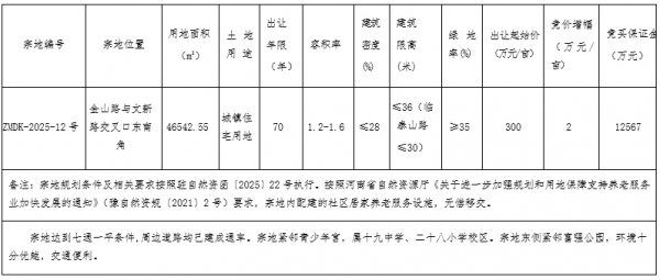 河南省驻马店市ZMDK-2025-12号宗地国有建设用地使用权网上拍卖出让公告