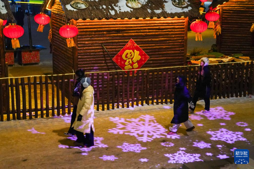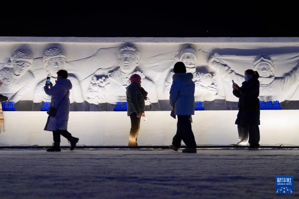 1月6日,市民在活动现场的“冰雪冠军”雪雕墙前参观。