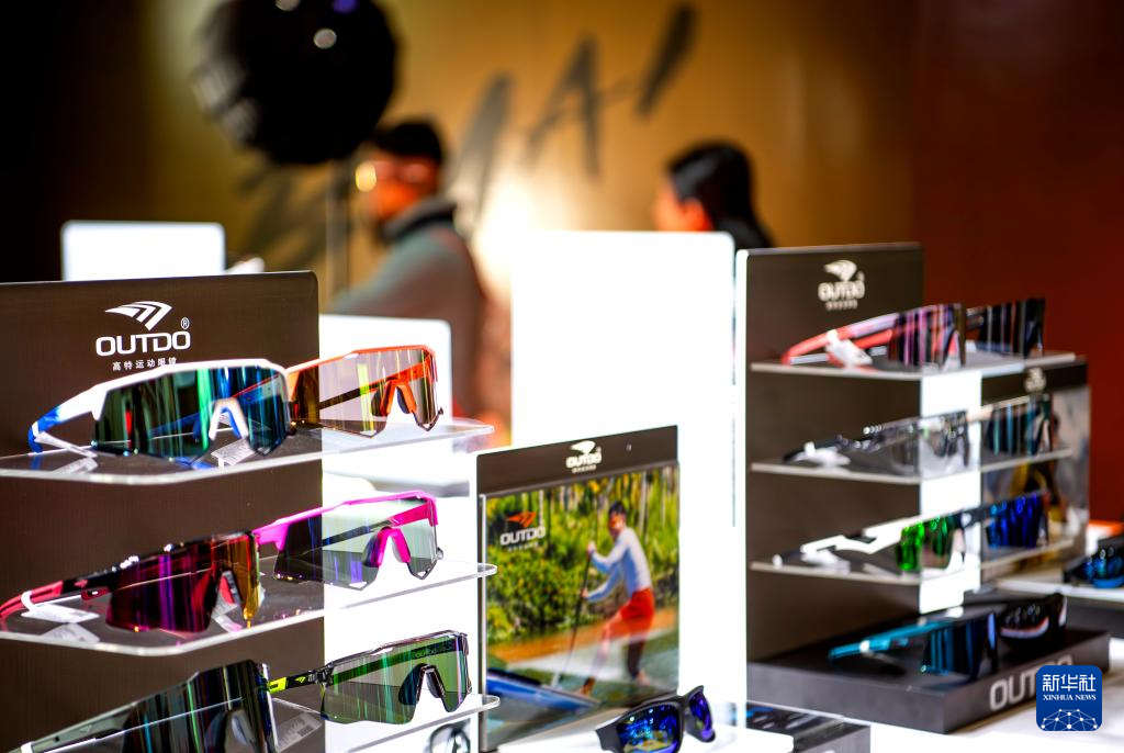 这是1月8日在博览会上拍摄的马拉松比赛专业眼镜展台。