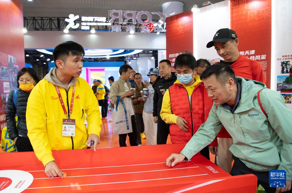 这是1月8日拍摄的第七届中国马拉松博览会现场。