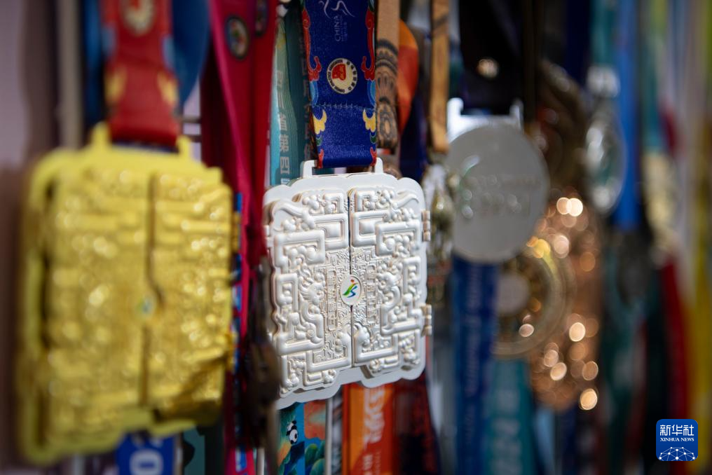 1月8日,一家奖牌生产企业在博览会上展示各种马拉松赛事奖牌。