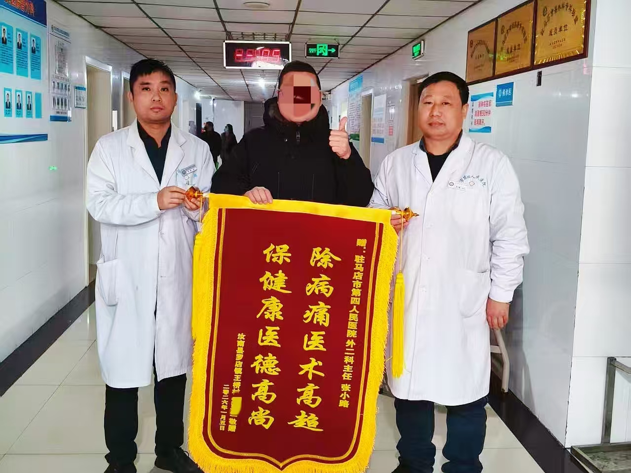 近日,驻马店市第四人民医院外二科成功为一名急性坏疽性胆囊炎患者实施了腹腔镜胆囊切除术,让患者转危为安。患者为表感谢,特意送上一面印有“除病痛医术高超,保健康医德高尚”字样的锦旗。