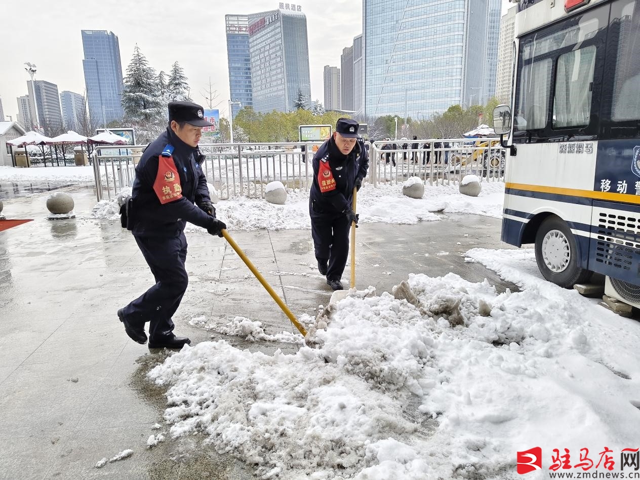 驻马店网讯(通讯员 杨起帆)受强冷空气影响,辖区内迎来低温雨雪天气。为切实保障旅客出行安全顺畅,1月20日,市城乡一体化示范区公安分局闻雪而动、以雪为令,迅速组织驻马店西站执勤点民辅警在广场周边开展清雪除冰行动,用坚守与担当在冰雪中为旅客筑牢平安出行防线。