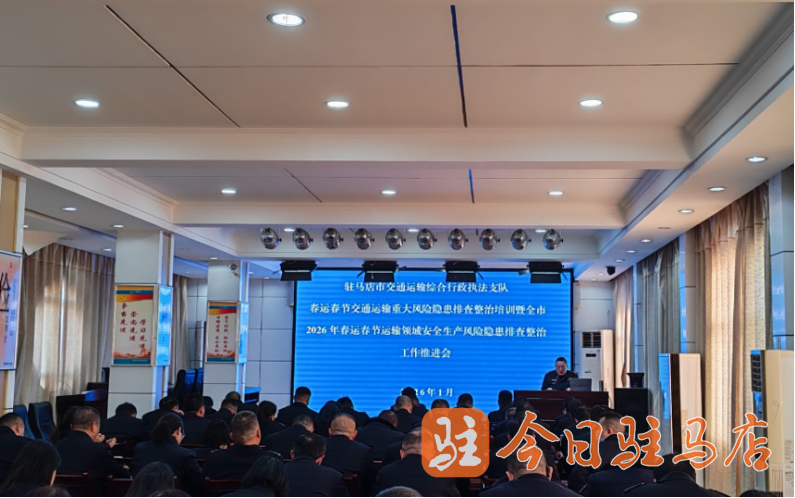为切实做好2026年春运春节期间交通运输安全保障工作,深刻汲取2025年第四季度行业内外事故教训,按照市交通运输局《2026年春运春节期间全市运输领域安全生产风险隐患集中排查整治工作方案》工作部署要求,1月15日,驻马店市交通运输综合行政执法支队组织全体人员开展专题培训活动。