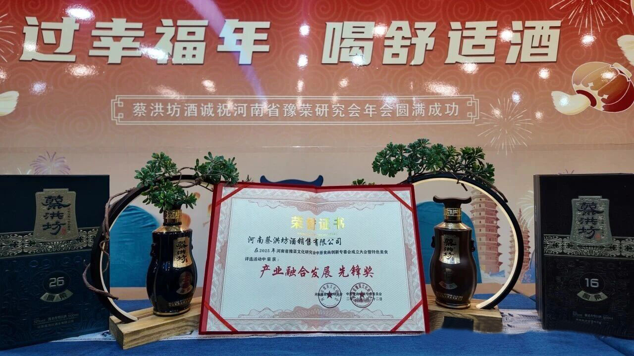 在河南豫菜研究会中原食尚创新专委会成立大会暨特色美食评选活动中,河南蔡洪坊酒销售有限公司荣获“产业融合发展先锋奖”称号。蔡洪坊酒源于对蔡洪坊品质与文化内涵的双重认可,其酿酒工艺承袭古法,融合现代科技,大胆创新,独创馥柔香型白酒,每一滴酒都饱含着对中原酿酒传统的敬畏与创新。蔡洪坊酒以其卓越品质和文化担当,为豫菜与豫酒文化对话增添浓墨重彩的一笔。