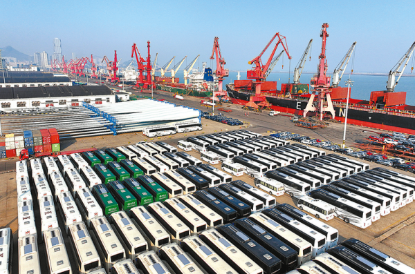 摘要:1月27日,在江苏省连云港港东方港务分公司码头,大批车辆集港等待装船外运(无人机照片)。1月27日,工人在河北省唐山市海港经济开发区一家铁塔生产企业车间工作。