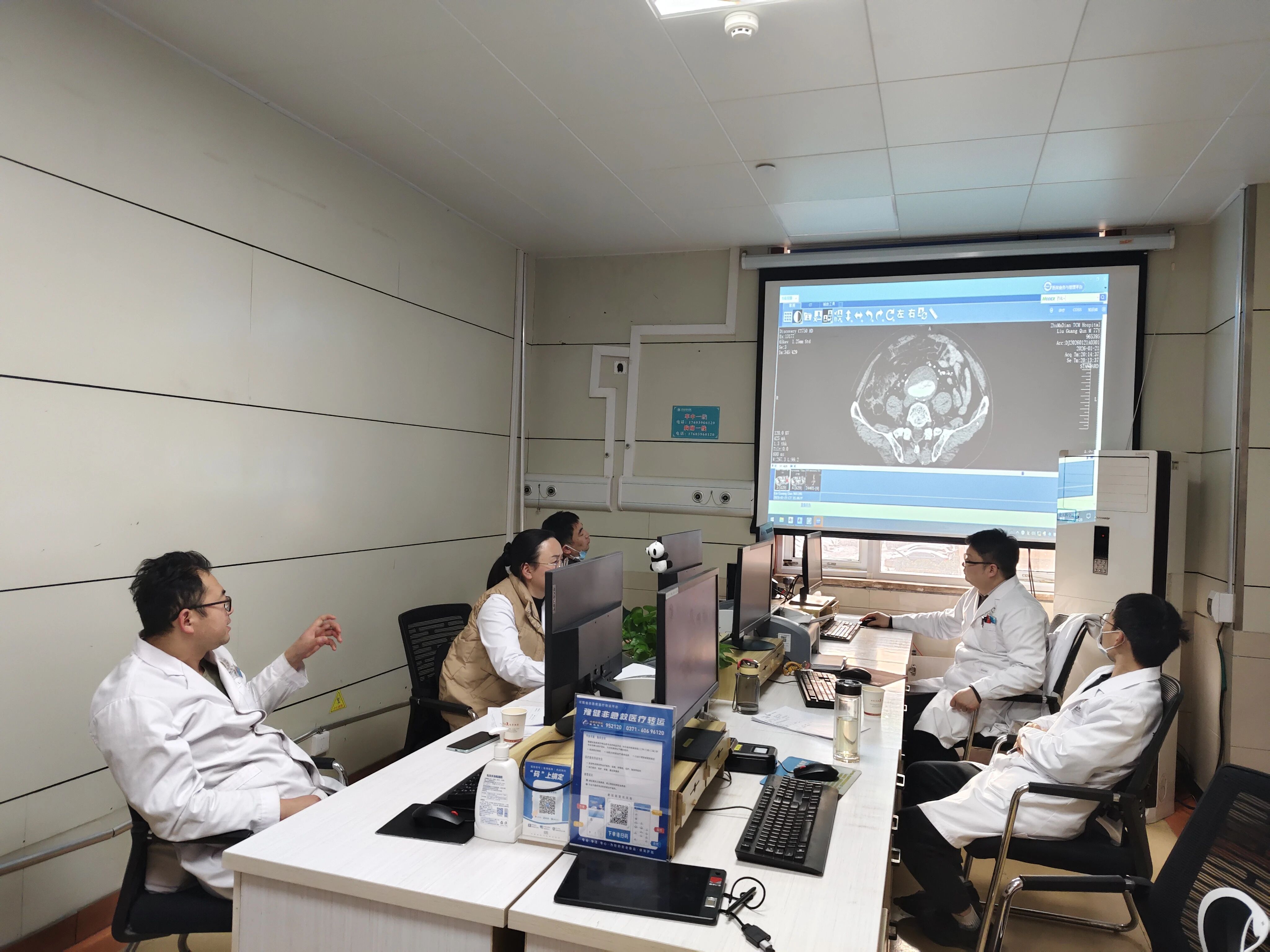 面对如此广泛而复杂的病变,传统开放手术需开胸开腹,创伤巨大,对一位77岁且患有高血压的老人而言,风险极高。时间就是生命。介入科袁书堂主任组织科内多次术前讨论并上报医务科,医院迅速启动多学科会诊,一场为刘大爷量身定制的“血管保卫战”方案在讨论中成形。