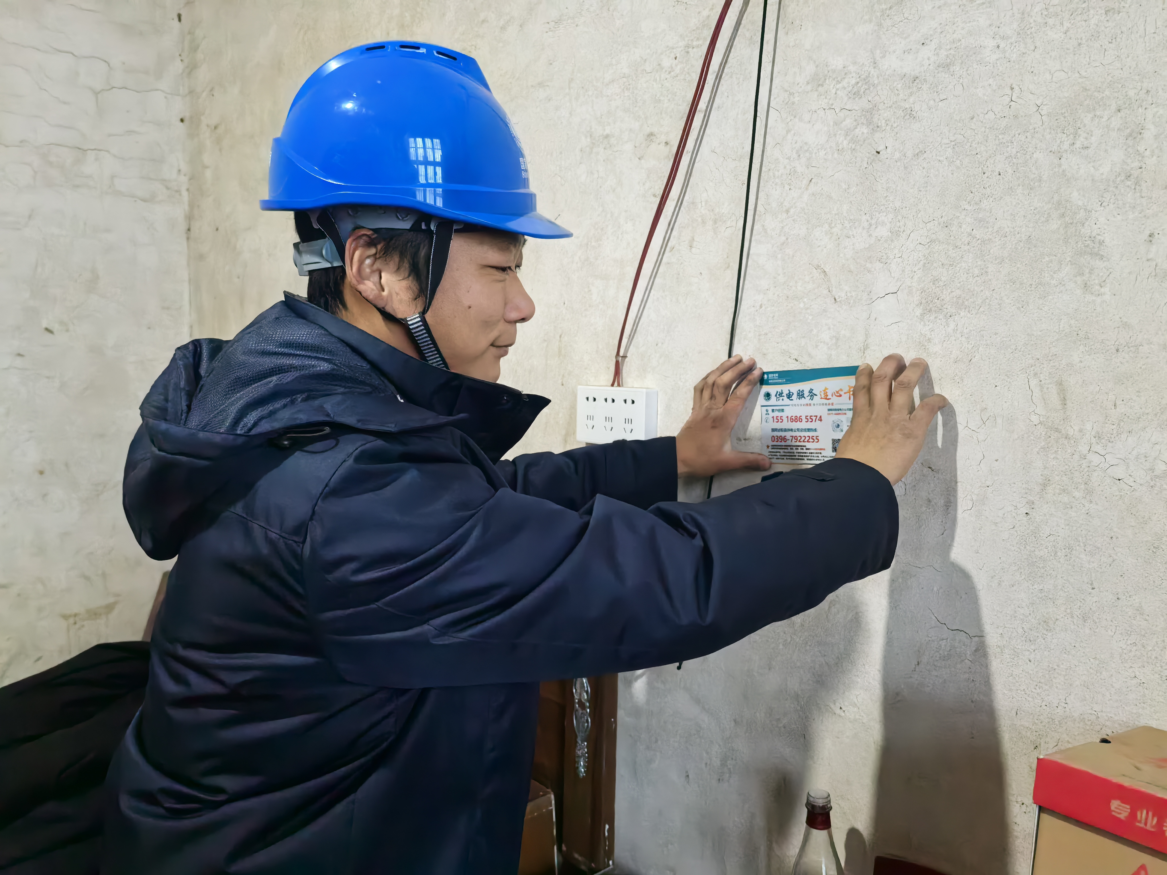 对于返乡人员家庭,工作人员重点对长期空置房屋的电路进行安全“体检”,排查老化线路、松动接头等问题,现场协助整改。“在外打工最担心家里老人用电安全,现在你们送来了服务卡,还帮我们检查了线路,这下春节用电更放心了!”刚返乡的村民李先生看着张贴好的服务卡,语气中满是安心。