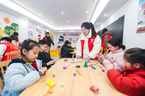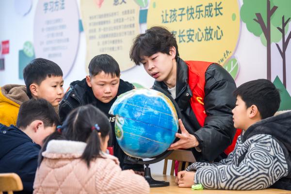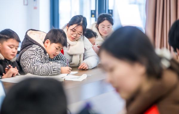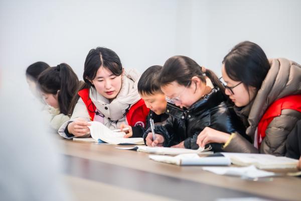 2月2日上午,记者在公园大地社区活动室看到,22名经过选拔培训的大学生志愿者正带领孩子们辅导寒假作业。另一边,北关社区的活动室内,美术手工课程也在同步开展。两个服务点共接收70余名6至14岁的青少年,其中大部分来自快递、网约车、外卖配送等新就业群体家庭。