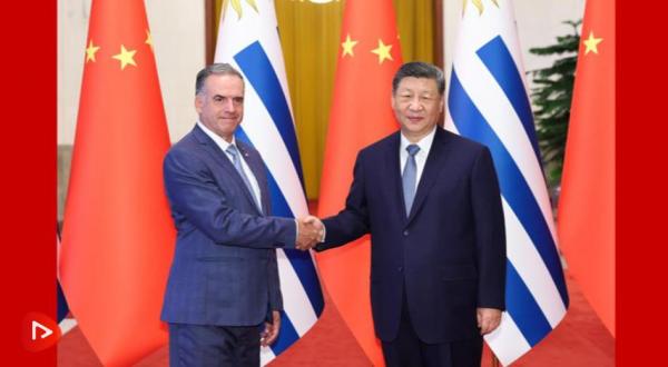 习近平指出,当今世界正处于百年未有之大变局,国际形势变乱交织,单边霸凌愈演愈烈,中方支持乌拉圭接任“77国集团和中国”轮值主席国,愿与乌方加强全球南方团结协作,共同推进平等有序的世界多极化、普惠包容的经济全球化,携手并进、共谋发展,为构建人类命运共同体作出更大贡献。中方始终重视中拉关系,支持拉美和加勒比国家维护自身主权、安全、发展利益,支持乌拉圭接任拉美和加勒比国家共同体以及南方共同市场轮值主席国,愿同乌方和地区国家推动共建中拉命运共同体走深走实。