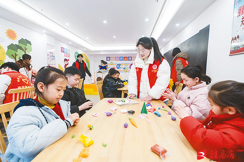 2月2日上午,在西平县公园大地小区和北关社区的活动室里,一群孩子在志愿者的陪伴下正在制作新春手工作品。这是共青团西平县委近日启动的20天“伙伴计划”寒假爱心托管班,为当地快递员、网约车司机等新业态劳动者子女提供免费托管服务。