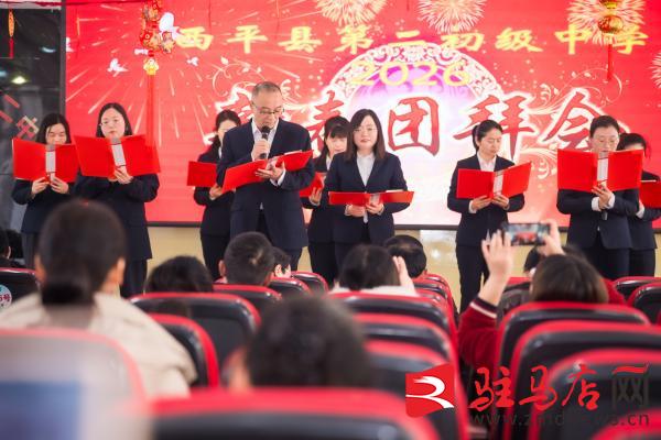 驻马店网讯(见习记者 赵永涛)红绸轻舞,笑语迎新。2月4日,西平县第二初级中学2026年迎新春团拜会举行,全校教职工齐聚一堂,共庆新春。