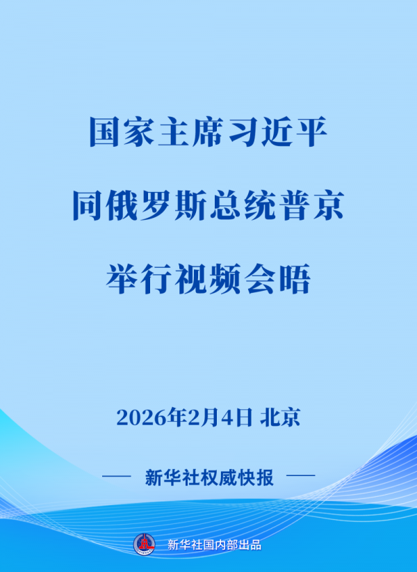 2月4日,国家主席习近平在北京同俄罗斯总统普京举行视频会晤。