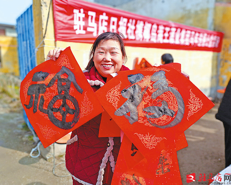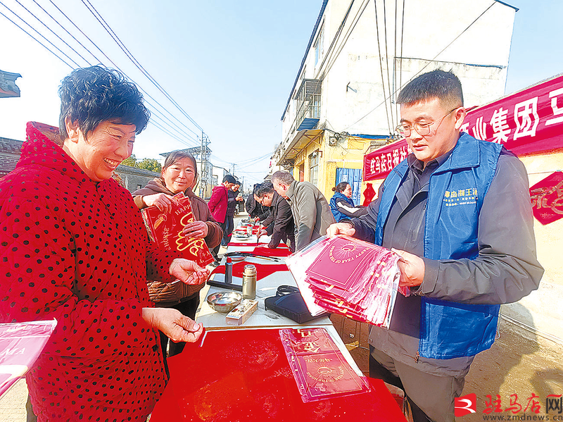 驻马店网讯(记者 高琳琳)2月4日上午,由驻马店日报社与椰岛海王集团携手开展的“翰墨迎新春 骏马送福来”义写春联公益活动在驿城区古城街道李湾村举行。