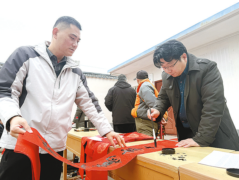 2月3日,开发区关王庙乡大舞台前人声鼎沸、锣鼓喧天,“强基工程”2026新春特别活动——“百花迎新乐中原”2026河南文艺界惠民演出活动在这里举行。演出结束后,义写春联活动拉开序幕,剪纸、泥塑等民俗展台前聚集了不少群众。此次活动由河南省文联指导,河南省舞蹈家协会、市委宣传部、市文学艺术界联合会主办,市舞蹈家协会、市民间文艺家协会、市书法家协会、市戏剧家协会、市杂技家协会、关王庙乡承办。