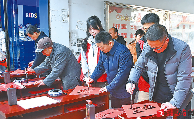 2月4日,由泌阳县总工会、县文联联合主办,县职工书法家协会承办的“翰墨迎春送万福 工会普惠进万家”活动火热启幕。活动现场,10多位职工书法家凝神挥毫、笔走龙蛇,一个个饱满灵动的“福”字跃然纸上,为市民送上最具文化味的新春祝福。记者 李杨 摄
